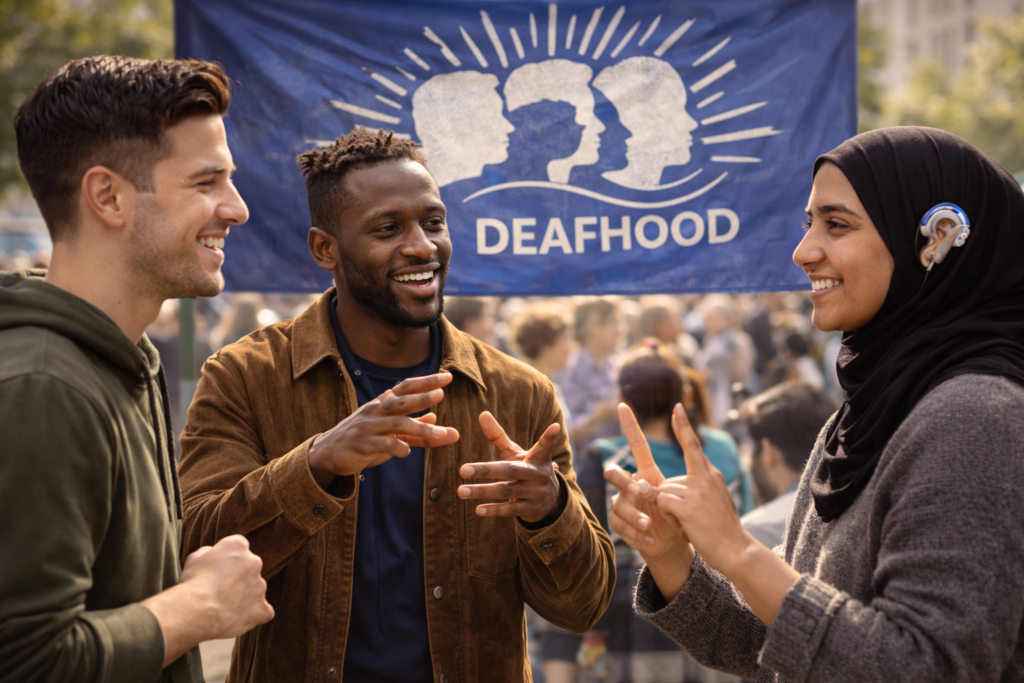 What is Deaf Identity? Deaf identity refers to how deaf people see themselves and their place in the world. It is shaped by personal experiences, the use of sign language, and being part of the Deaf community. Deaf identity is not just about being deaf; it includes cultural, linguistic, and social aspects that make each […]