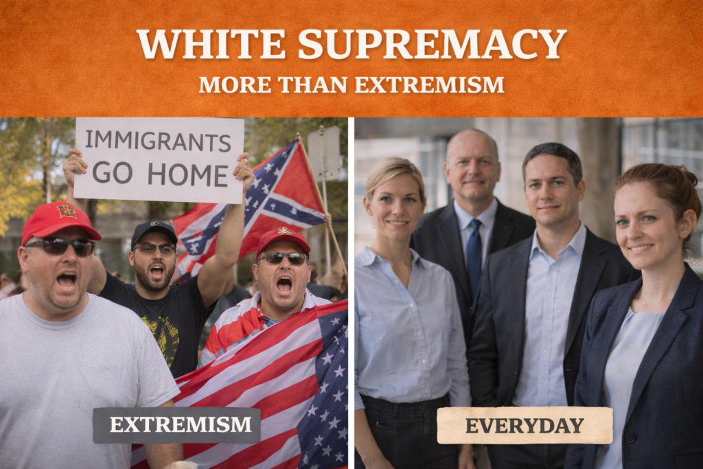 White supremacy is not just about hate groups. It is a global system that gives power to whiteness, in culture, language, leadership, and everyday life. It shapes how people are treated, who gets resources, and whose stories are told.